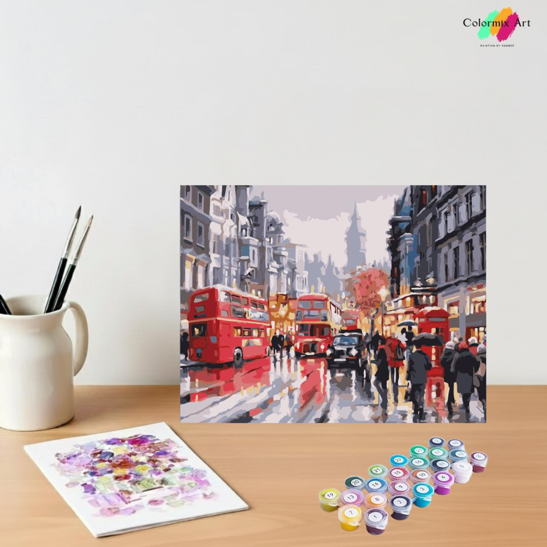 Match the numbers on the canvas with the labeled paint pots and start painting.