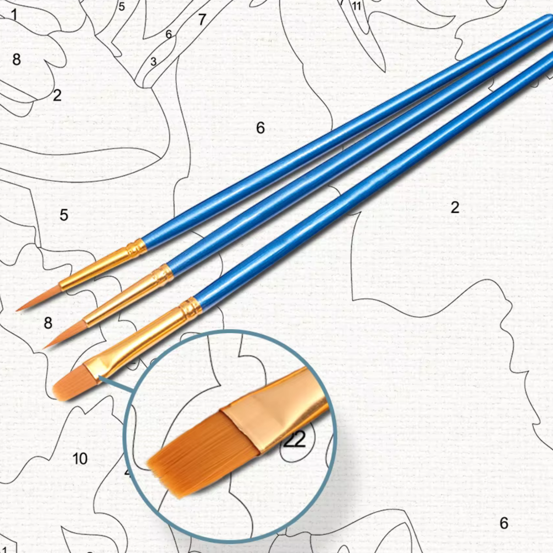 Every painting kit includes a pre-numbered canvas, numbered acrylic paints, quality brushes, and instructions. Everything you need to start painting arrives in one box.